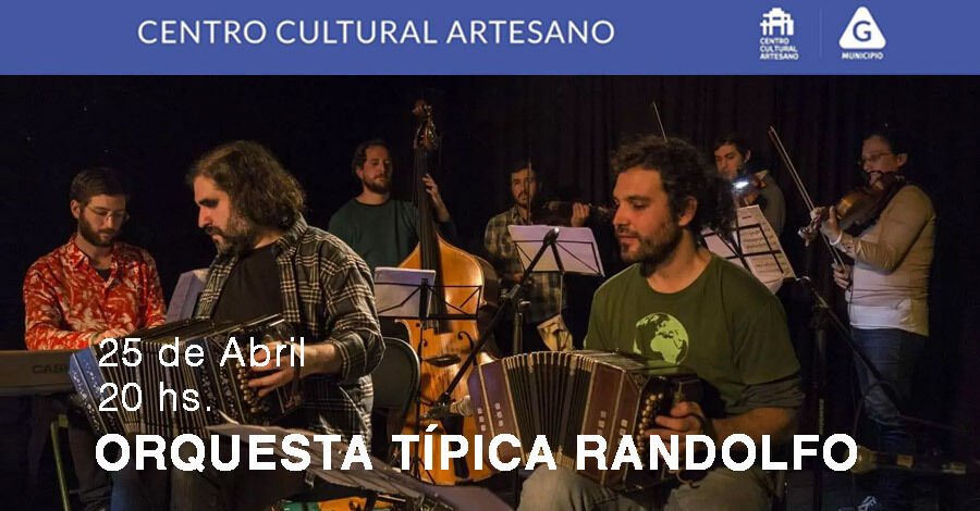 El jueves 25 de abril a las 20:00 hs.se presenta la Orquesta Típica Randolfo en el Centro Cultural Artesano.