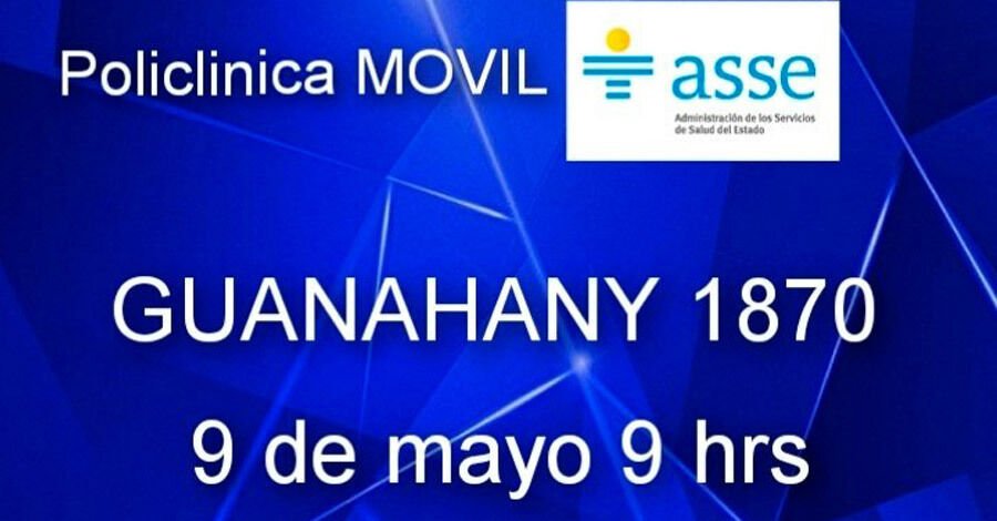 El martes 9 de mayo desde las 9 horas se instalará la policlínica móvil de ASSE en la Policlínica San José, Guanahany 1870.