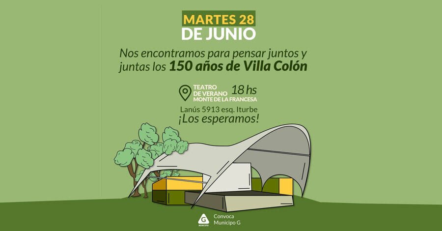 El martes 2 de agosto a las 18 horas se realizará una reunión para pensar junto a todos los vecinos y vecinas los 150 años de Villa Colón en el Teatro de Verano de Colón.