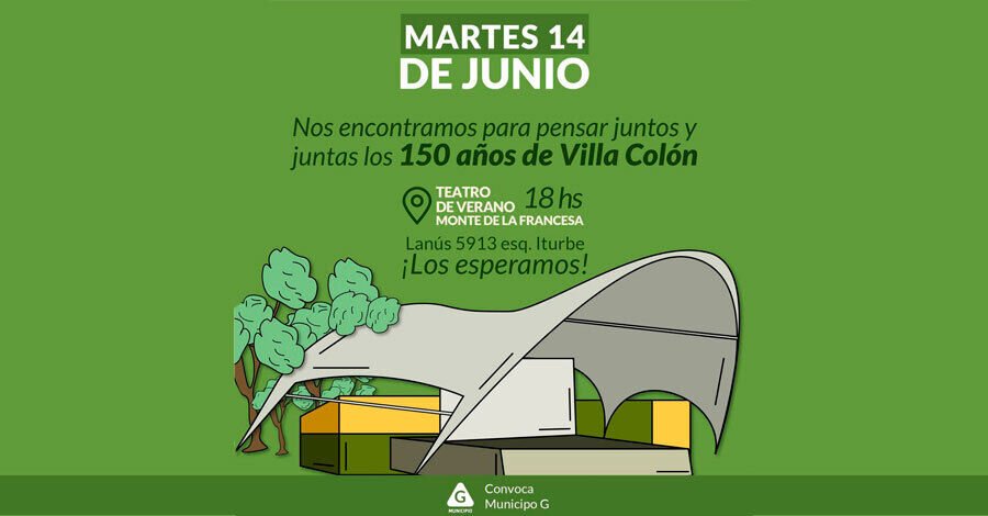 El martes 14 de junio a las 18 horas se realizará una reunión para pensar junto a todos los vecinos y vecinas los 150 años de Villa Colón en el Teatro de Verano de Colón.